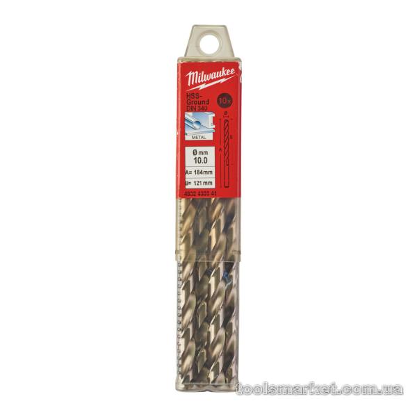 → Свердло по металу HSS-G MILWAUKEE DIN340, діаметр 10,0x184 мм, (10шт)