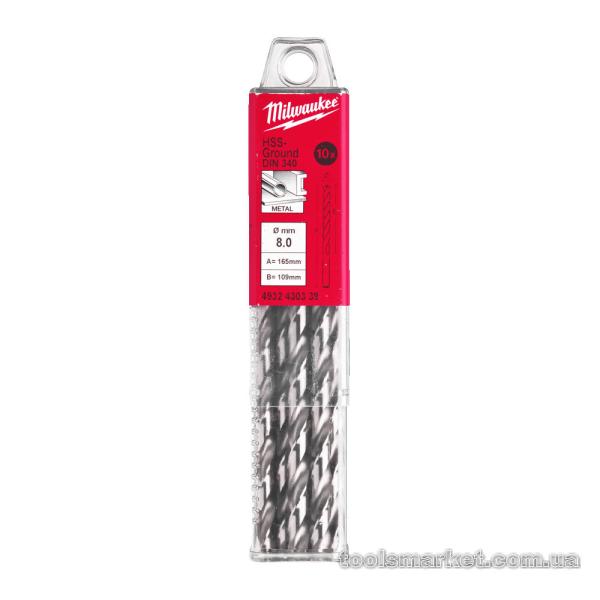 → Свердло по металу HSS-G MILWAUKEE DIN340, діаметр 8,0х165мм, (10шт)