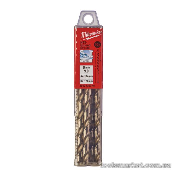 Свердло по металу HSS-G MILWAUKEE DIN340, діаметр 9,0x175мм, (10шт)