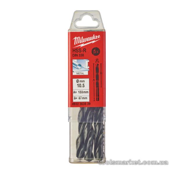 Свердло по металу HSS-R MILWAUKEE, DIN338, Ø10,5х133х87мм, (5шт)