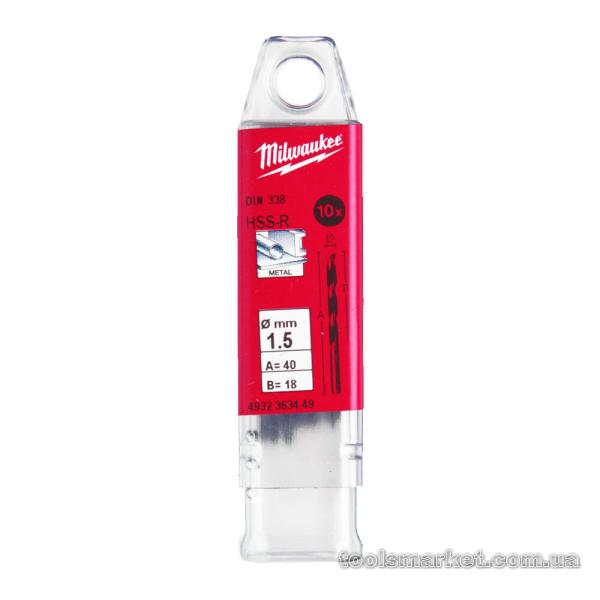Свердло по металу HSS-R MILWAUKEE DIN338, діаметр 1,5 мм, (10шт)