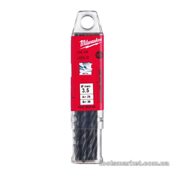 Свердло по металу HSS-R MILWAUKEE, DIN338, Ø3,5х70х39мм, (10шт)