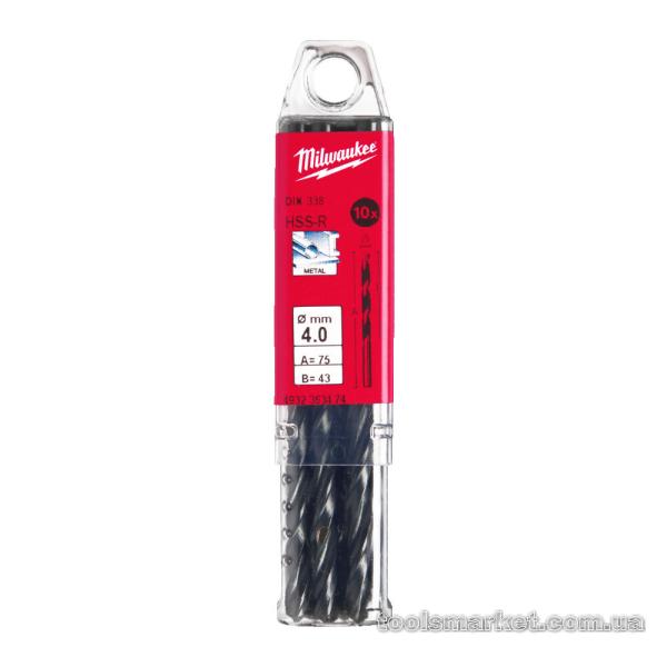 Свердло по металу HSS-R MILWAUKEE, DIN338, Ø4,0х75х43мм, (10шт)