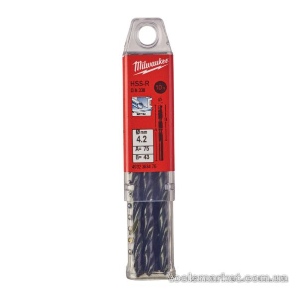 Свердло по металу HSS-R MILWAUKEE, DIN338, Ø4,2х75х43мм, (10шт)