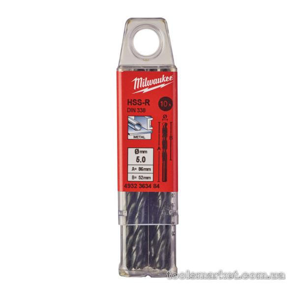 Свердло по металу HSS-R MILWAUKEE, DIN338, Ø5,0х86х52мм, (10шт)