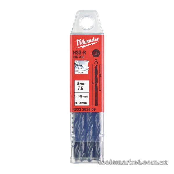 → Свердло по металу HSS-R MILWAUKEE DIN338, діаметр 7,5мм, (10шт)