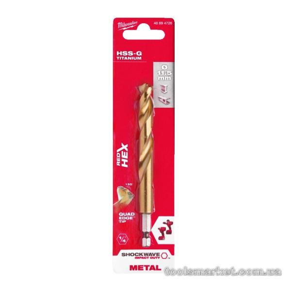Свердло по металу RedHEX HSS-G TiN MILWAUKEE, діаметр 11,5 мм
