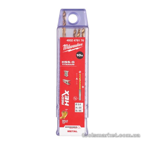 Свердло по металу RedHEX SHOCKWAVE™ HSS-TiN MILWAUKEE, Ø3,0х65х23мм, (10шт)