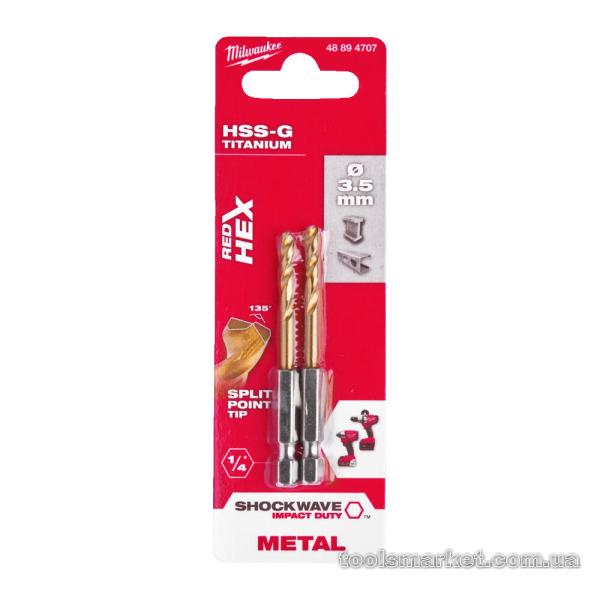 → Свердло по металу RedHEX HSS-G TiN MILWAUKEE, діаметр 3,5 мм (2шт)