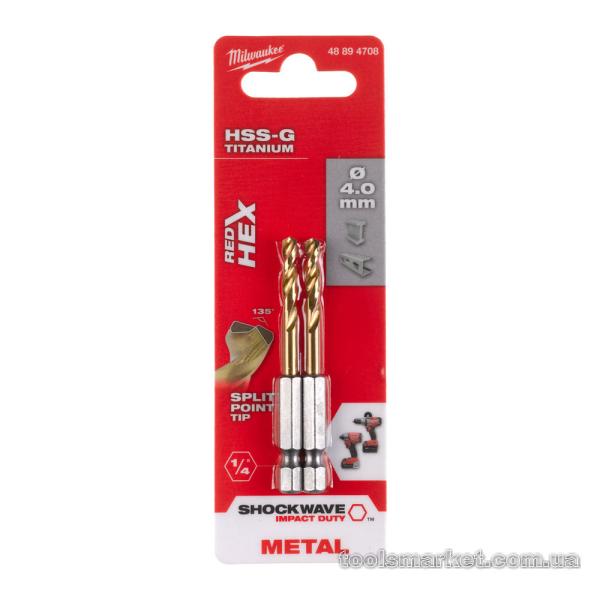 Свердло по металу RedHEX SHOCKWAVE™ HSS-TiN MILWAUKEE, Ø4,0х71,5х26мм, (2шт)