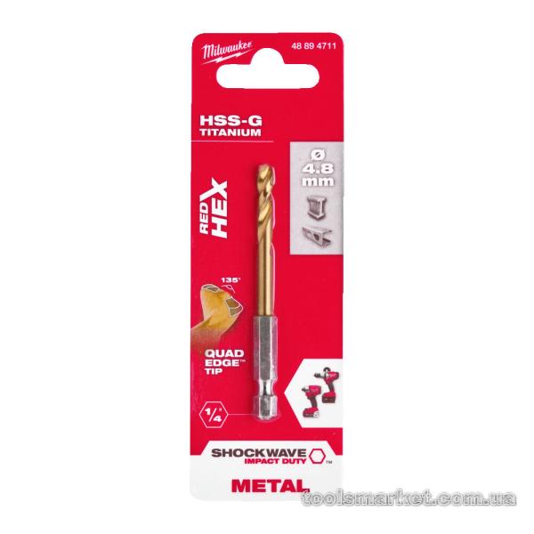 Свердло по металу RedHEX HSS-G TiN MILWAUKEE, діаметр 4,8 мм