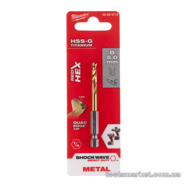Свердло по металу RedHEX HSS-G TiN MILWAUKEE, діаметр 5,0 мм