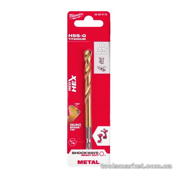 → Свердло по металу RedHEX HSS-G TiN MILWAUKEE, діаметр 7,5 мм