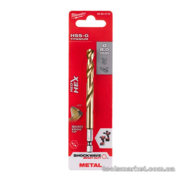 → Свердло по металу RedHEX HSS-G TiN MILWAUKEE, діаметр 8,0 мм