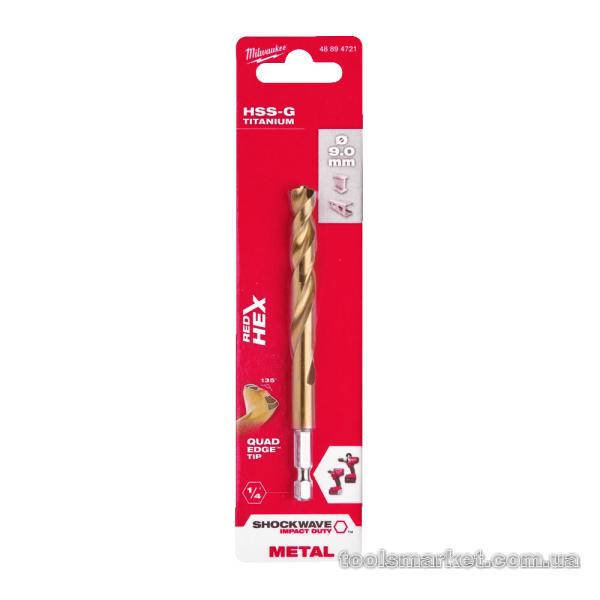 Свердло по металу RedHEX HSS-G TiN MILWAUKEE, діаметр 9,0мм