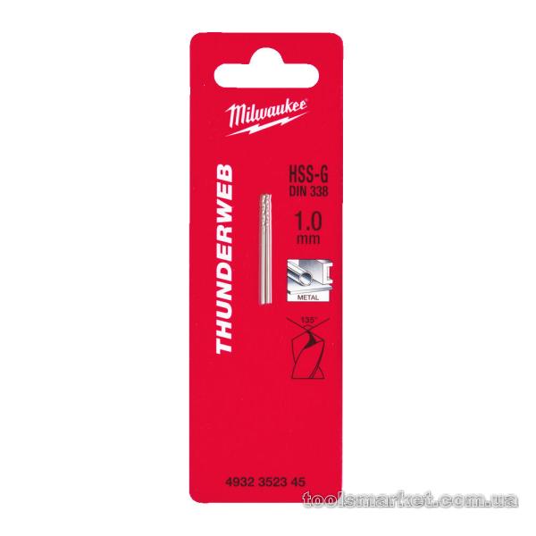 Свердло по металу THUNDERWEB HSS-G MILWAUKEE, DIN338, Ø1,0x34х12мм, (2шт)