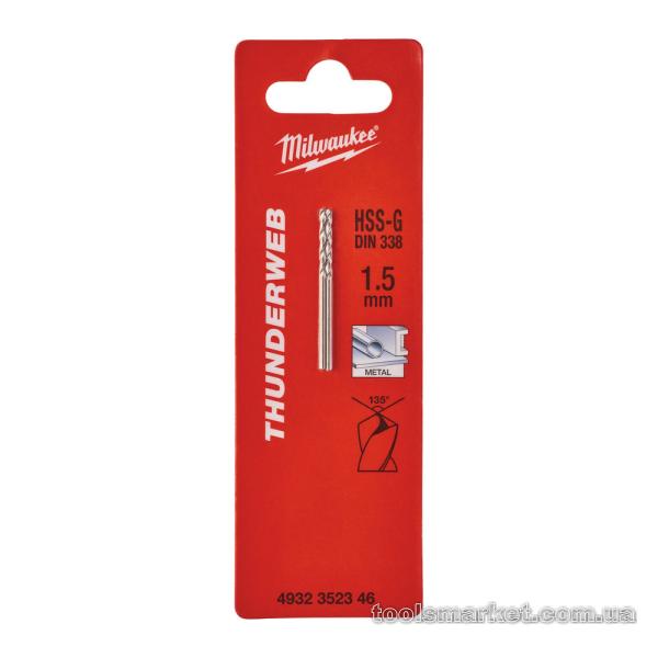 Свердло по металу THUNDERWEB HSS-G MILWAUKEE, DIN338, Ø1,5x40х18мм, (2шт)