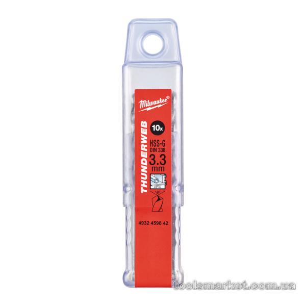 Свердло по металу THUNDERWEB HSS-G MILWAUKEE, DIN338, Ø3,3х65х36мм, (10шт)