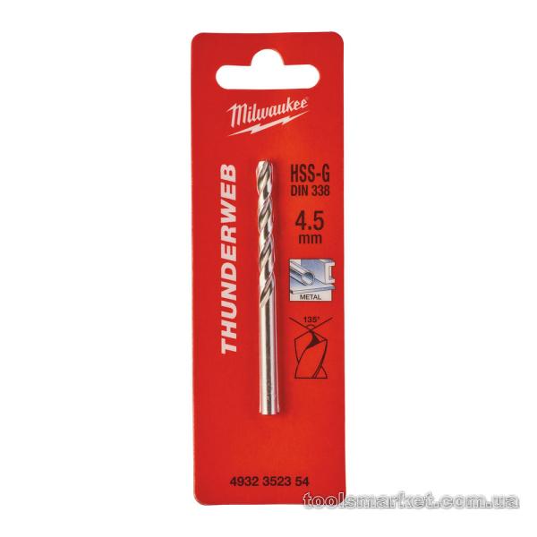 Свердло по металу THUNDERWEB HSS-G MILWAUKEE DIN338, діаметр 4,5x80 мм