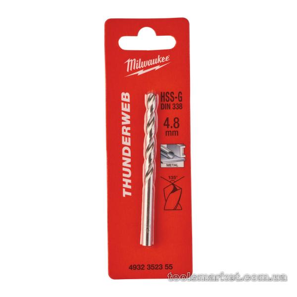 Свердло по металу THUNDERWEB HSS-G MILWAUKEE DIN338, діаметр 4,8x86 мм