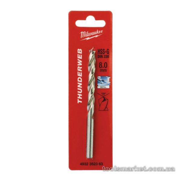 Свердло по металу THUNDERWEB HSS-G MILWAUKEE DIN338, діаметр 8,0 x 117 мм