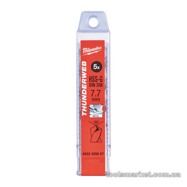 Свердло по металу THUNDERWEB HSS-G MILWAUKEE DIN338, дыаметр 7,7х117мм, (5шт)