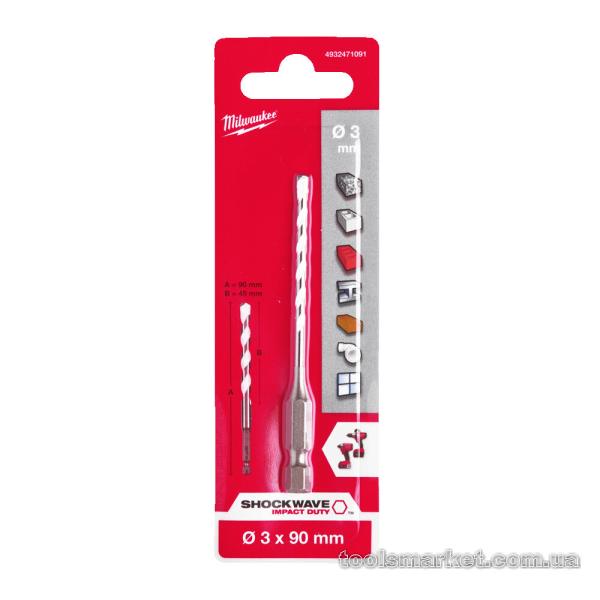 Свердло універсальне ShW HEX MILWAUKEE, 3 x 90 мм