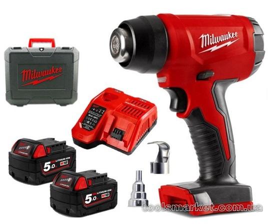 → Термоповітродувка акумуляторна MILWAUKEE, M18 BHG-502C (+ заряд.пристрій, 2 акум.Х 5Аг, кейс)