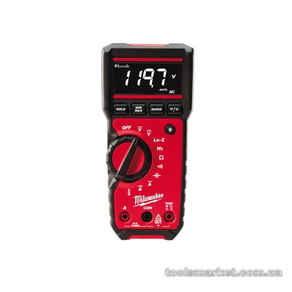 TRMS; Kat. III 600В; Пер/Піст струм 10А; напруга пер/пост струм 600В; функція Lo-Z; Опір 40.0 Мом; Цілісність ланцюга-Звукового; частота 2-50Гц; Вимірювання температури; батарейки типу ААх2шт; вимірювальні щупи; термопара; вага 0,4 кг; сумка особливості: Справжнє середньоквадратичне значення (TRMS) завжди гарантує точні показання Висококонтрастний дисплей, що легко читається, забезпечує ясні показання. Категорія безпеки Кат. IV 600 В Встановлений збоку диск керування дозволяє працювати однією рукою Набір можливостей призначений спеціально для електриків - для інтуїтивного використання Функція Lo-Z. - точні виміри гарантовані Універсальний контактний вимір температури Рейкова напрямна для встановлення приладдя Комплектація: Акумулятор 2шт.*AA Вимірювальні щупи Термопара Зарядний пристрій у комплект не входить Поставляється в Сумка для інструментів. Технічні характеристики Тип акумулятора АА Опір () 40 MOhm Ємність [F] 1000 Рівень безпеки Кат. III 600 В Клас захищеності IP 64 Напруга (змінний/постійний струм) (В) 600 Функція Lo-Z так Частота (Гц) 2.00 HZ - 50.00 kHz Вага 0.4 Комплект поставки: Цифровий мультиметр Milwaukee 2217-40 - 1 шт. Батарейки АА - 2 шт Вимірювальні щупи - 1 комплект Термопара (подвійний «банан») – 1 шт. Інструкція з експлуатації Кейс