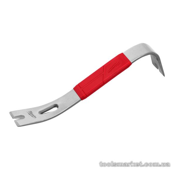 Цвяходер Milwaukee 4932478253 має скошений край, який збільшує важіль і покращує доступ під час висмикування цвяхів і підняття предметів. Інструмент легко видаляє цвяхи та скоби, не пошкоджуючи підлогове покриття та навколишні матеріали завдяки посиленому ударному язичку, що забезпечує додаткове проникнення матеріалу при використанні молотка. Посилена частина допускає удари, забезпечує відмінне проникнення в матеріал молотком.
