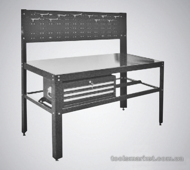- Верстак гаражный предназначен для слесарных работ и позволяет разместить инструменты в ящиках и на полках для дальнейшей удобной работы.