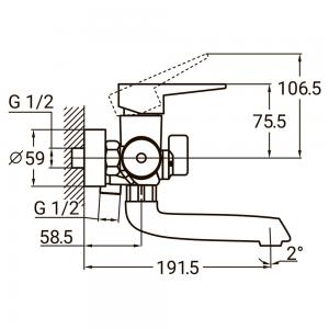 → Змішувач HK Ø35 для ванни гусак прямий 150мм дивертор вбудований картріджний AQUATICA (HK-2C130C)