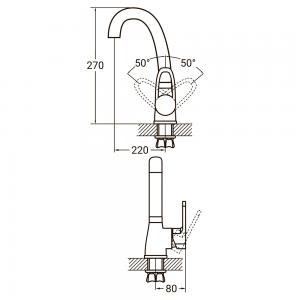 Змішувач HL Ø35 для кухні гусак вухо на гайці AQUATICA (HL-4B130C)